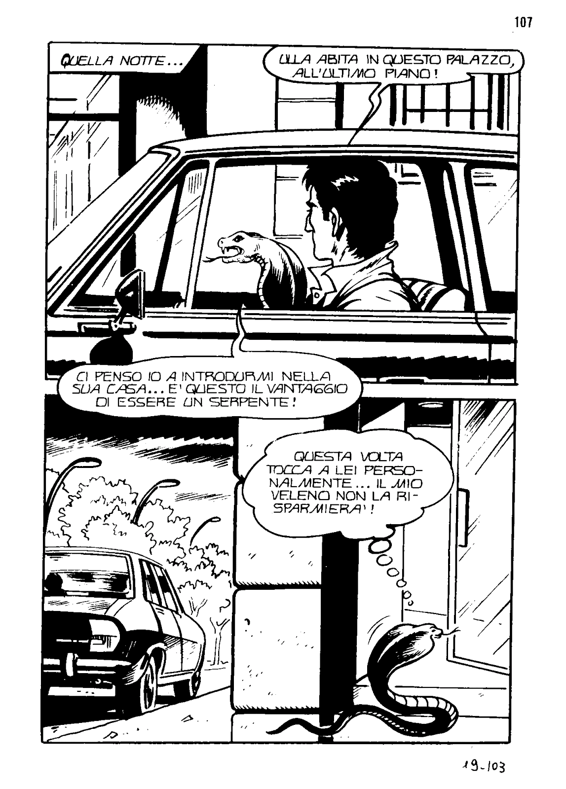 2. Già, finale un po' frettoloso, mi aspettavo una lotta tra licantropa e cobra, si è perso tempo con le vignette dedicate alla psicanalisi e non è rimasto lo spazio per un finale un po' più movimentato. L'interpretazione fallo/serpente dello psicologo è la cosa più scontata che si potesse trovare :D