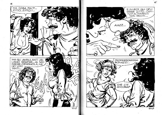 PS: Ringrazio CHARLES di VINTAGECOMIX per la scansione di questo buffo e piccante episodio di PIERINO in perfetto stile natalizio...Per molti oggi cominciano le feste e quindi le vacanze e Pierino cade come il cacio sui maccheroni. Grazie agli spiritosi disegni di FENZO e a una sceneggiatura hot al punto giusto, l'episodio risulta uno dei più riusciti della serie, sfruttando a pieno l'ambientazione scolastica, la malizia delle prime voglie adolescenziali, gli scherzetti a sfondo erotico tipici delle commedie sexy italiane e americane ambientate appunto nel liceo. So che questo personaggio e serie non risuote le simpatie e l'apprezzamento di tutti, sicuramente non è il massimo del genere, ma alla fine non so perchè, ha sempre un'alchimia vintage di fattori che alla fine a me non dispiace....