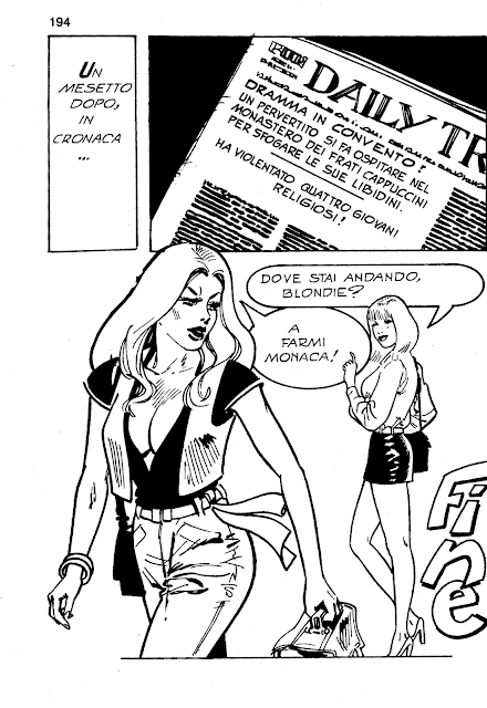 Peccato che l'erotismo in questo numero sia limitato anche perché una serie come questa uscita in anni ormai super-hard nel fumetto aveva abituato i suoi lettori a ben altro. Ma la EDIFUMETTO era così, spesso lasciava a bocca asciutta o spiazzava il suo pubblico. L'episodio fa comunque parte della prima stagione de LA DOTTORESSA, è il numero 19, qui scansionato per noi da DONATO CAZZESE (che ringraziamo) preso però da una ristampa-raccolta (per questo la numerazione pagine come vedrete è diversa).