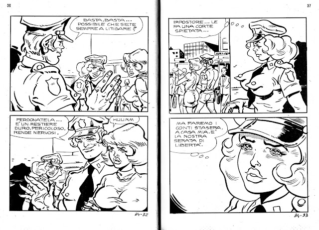 PS: Bell'episodio piccante de LA POLIZIOTTA offerto dal nostro amico blogger CHARLES che ringraziamo. Stavolta nel rapporto tra la bella Star e Silver si insinua un'altra provocante bionda (disegnata forse un po' troppo simile alla protagonista...ma vabbeh), la giornalista Rose che sedurrà entrambi i nostri eroi dalla sexy divisa aderente, mettendo finalmente un po' di pepe alla serie, che spesso si limita a proporre la solita scenetta vista e rivista tra i due protagonisti e poi una serie di molestie e stupri. Qua invece si crea una bella e interessante tensione sessuale che purtroppo poi viene un po' tirata via nelle scene hot (quella tra Silver e la giornalista infatti poteva essere molto più allungata e Silver dovrebbe stare sopra !!,...). Inoltre ci si aspettava un bel trio erotico finale tra i due poliziotti e la guest di questo episodio che invece non c'è...peccato. Però meglio di tanti altri episodi letti in precedenza...