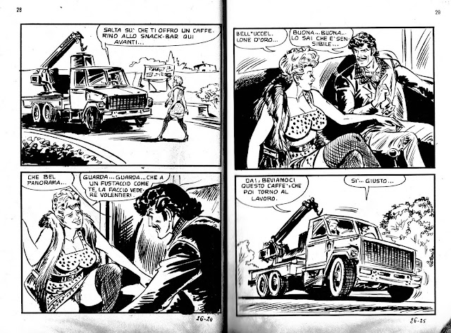 PS: Grazie alla scansione di CHARLES  leggiamo oggi l'episodio numero 26 della gloriosa serie EDIFUMETTO de IL CAMIONISTA. In questa piccantissima avventura c'è il diversivo del carro-attrezzi, l'incontro con la voracissima Ramona seguita dal buffo, ma malizioso intermezzo con Rino e la moglie che invidia le doti erotiche del camionista e una piccante cosa a tre tra il protagonista, Ramona e la sua bionda amica....Insomma uno degli episodi tra i più riusciti del Vergone che raramente deludeva i suoi lettori e le sue fan lettrici...