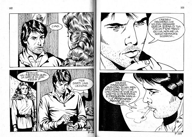 Sappiate, infatti, che Romanini non ha MAI lavorato per la Ediperiodici e che tutti i lavori attribuiti errroneamente a questo indimenticabile artista sulle tante testate della EP sono opera di suoi "discepoli" che usavano ricalcare le fisionomie dei suoi personaggi e sforzandosi di imitare molti elementi tipici del suo stile (modo di disegnare i capelli, le anatomie, i panneggi, gli sfondi, etc...). Non ho avuto il tempo di passare le tavole del secondo episodio a William Bondi (che di Romanini è stato allievo e collaboratore per tanti anni) per avere conferma che fossero sue, ma mi ricordo di una nostra telefonata risalente a mesi fa quando mi dissse: "Tutte le volte che sfogli un albo della Ediperiodici e ti trovi davanti a delle tavole che sembrano a prima vista di Giovanni, ma che poi, guardandole con occhio attento e di mestiere, vedi che in tante cose non ti convincono, sappi che sono opera mia!" E infatti non mi hanno convinto troppe cose, Non ci metto la mano sul fuoco che siano proprio di Bondi, ma mettetevi l'anima in pace: non è Romanini.